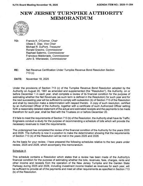 NJTA is under no obligation to update any information included on the Investors page. The information and expressions of opinion herein are subject to change without notice, and the posting of information on this website does not imply that there has been no change in the affairs of NJTA since the Dated Date.