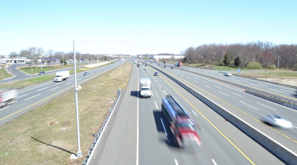 A New Jersey Turnpike lane set aside for certain hours of the day for use only by high-occupancy and fuel-efficient vehicles.